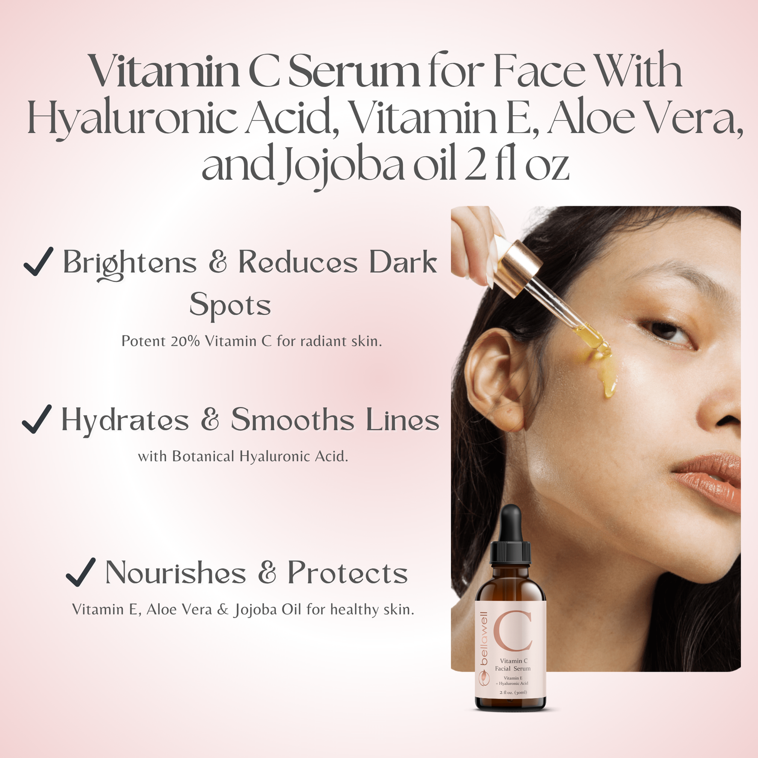 Packed with 20% Vitamin C, Hyaluronic Acid, Aloe Vera, and Jojoba Oil, this serum helps brighten dull skin, smooth fine lines, and deliver deep hydration for a radiant, healthy glow.